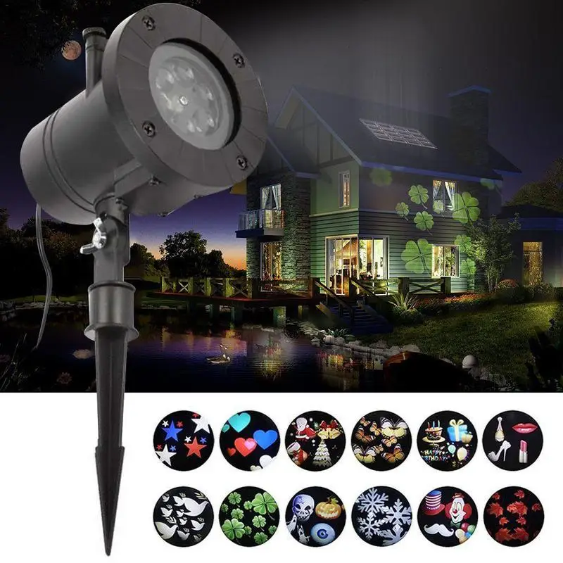 12 Patterns Waterproof Snowflake Outdoor Projector Projection Lamp Lawn Logo Light Holiday Light Fo