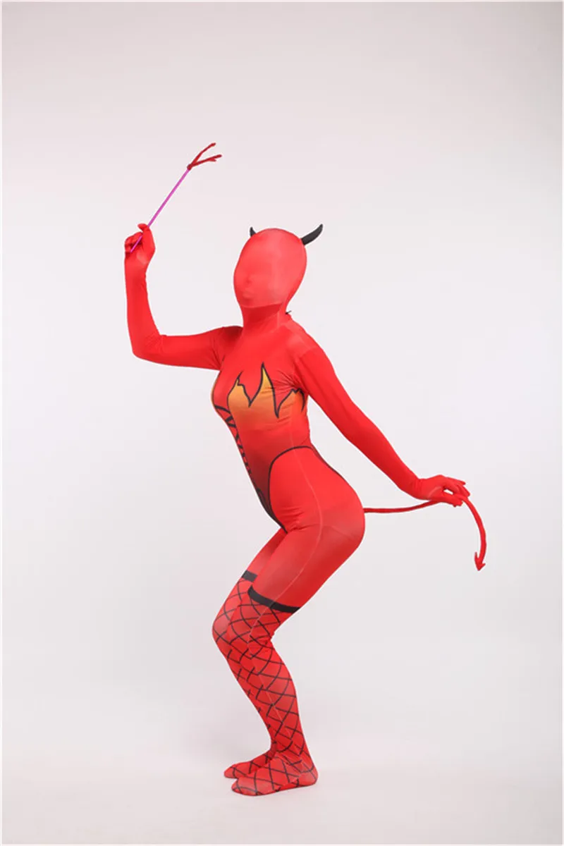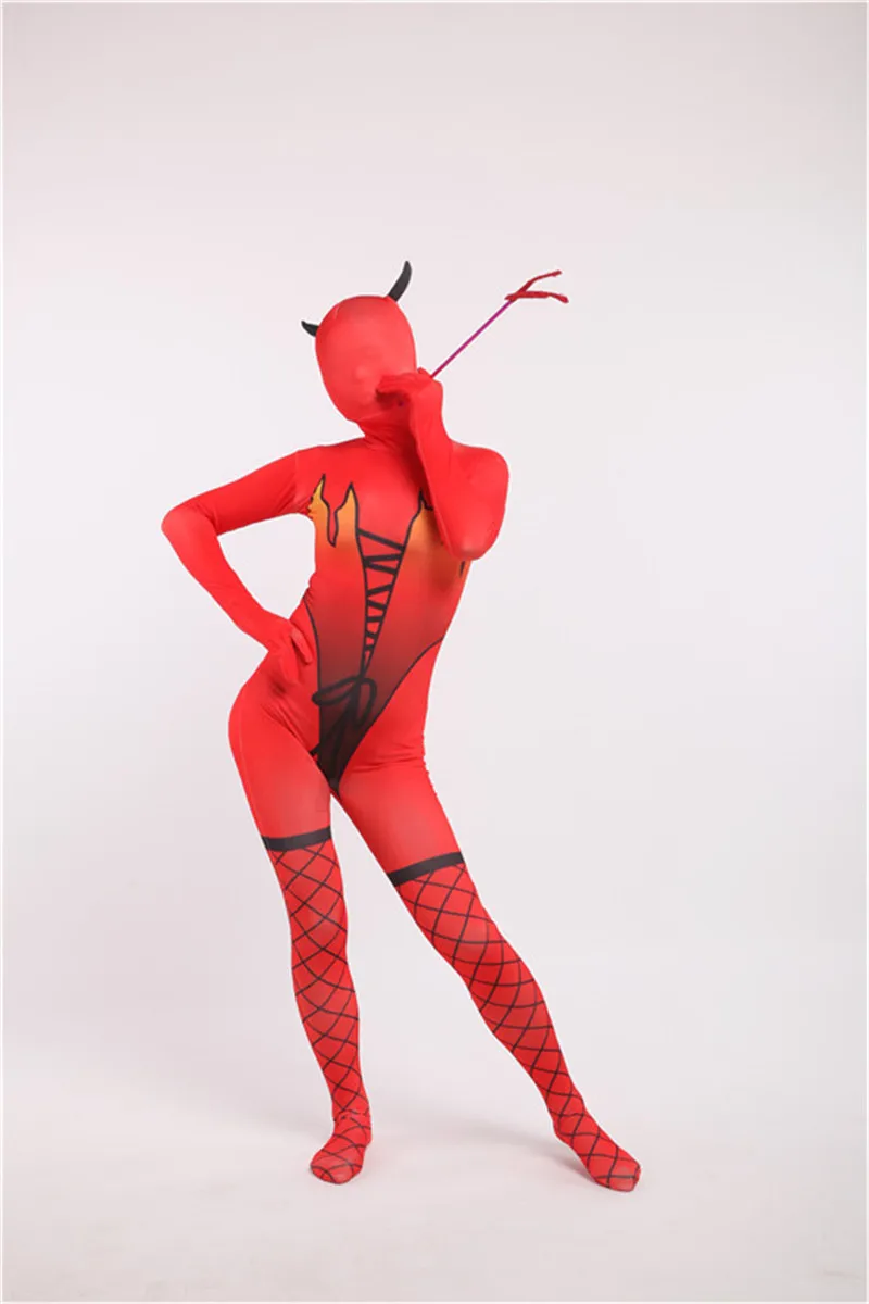 HOT SALE Halloween Devil Cosplay Costume Adult Zentai Catsuit Demon 3D Print Skin Tight Bodysuit Women Sexy