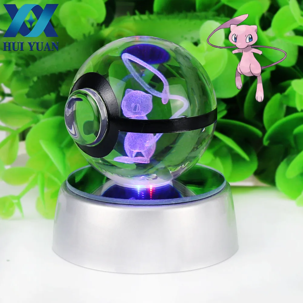 Mewtwo 3D Crystal Ball Pokemon Go 5CM Desktop Decoration Light Glass Ball LED Colorful Base Lamp Ch