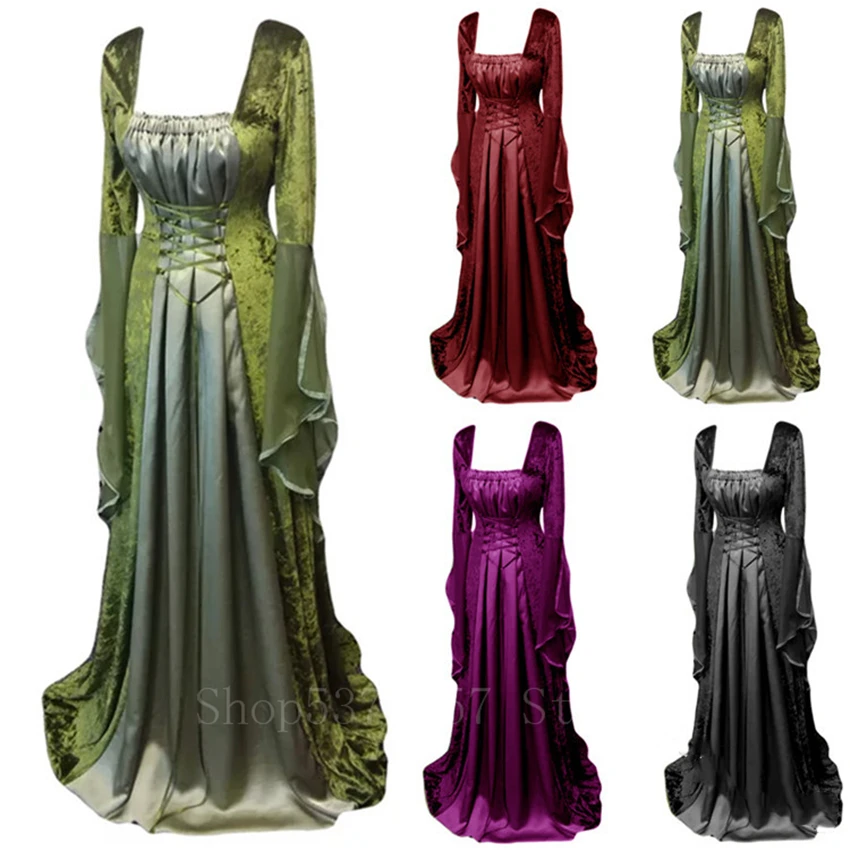 BEST Woman Vintage Middle Age Badage Dress Halloween Medieval Party Elegant Renaissance Square Collar Pr