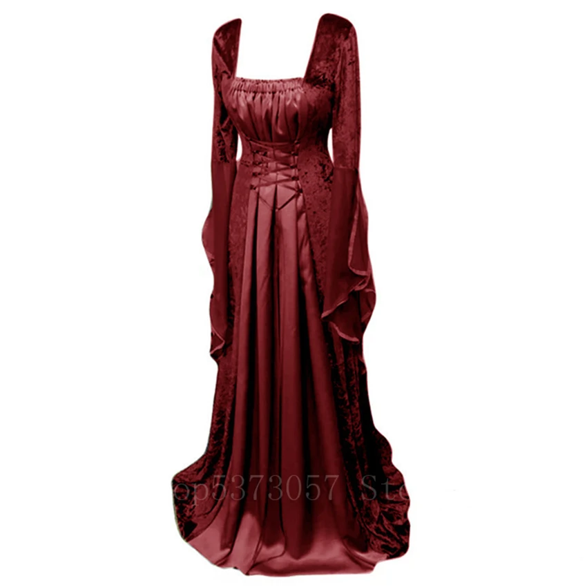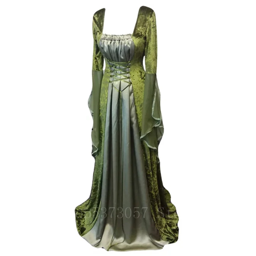 Woman Vintage Middle Age Badage Dress Halloween Medieval Party Elegant Renaissance Square Collar Pr