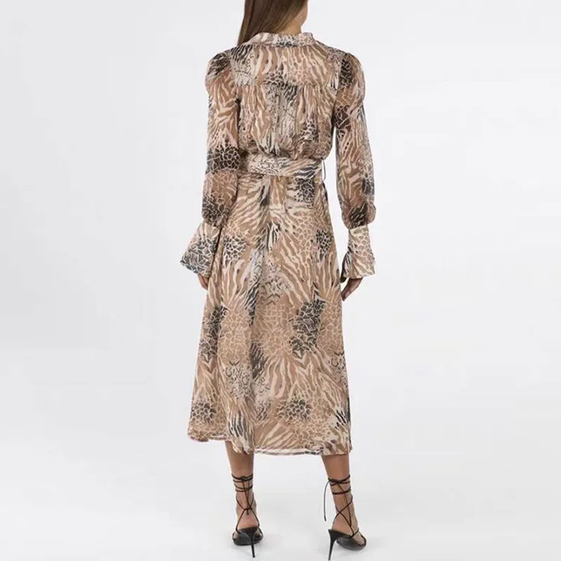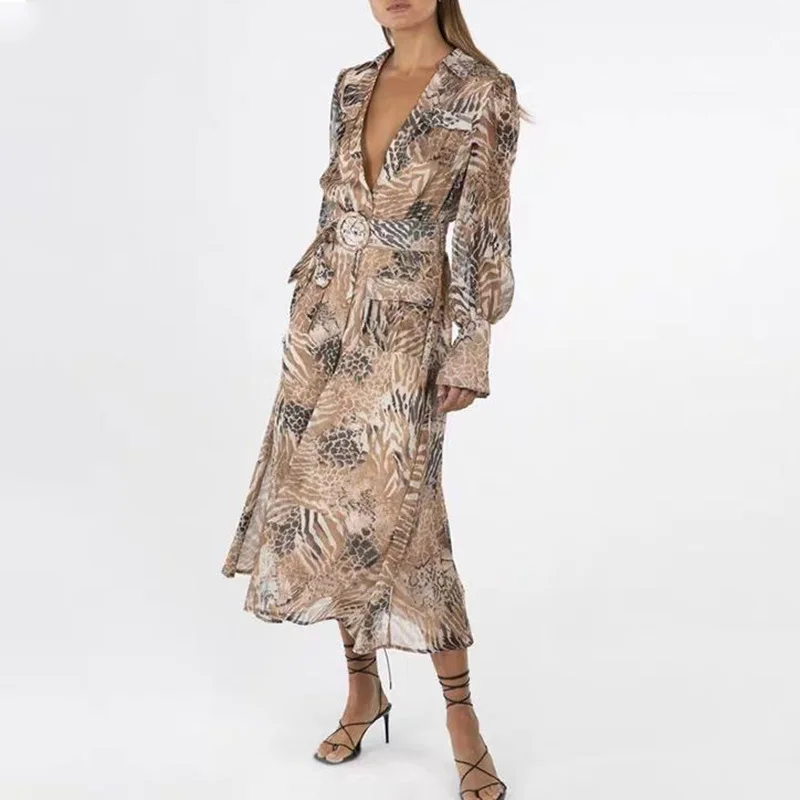 Women Leopard Shirt Dress Long Sleeve Belted Loose Holiday Beach Summer Dress Midi