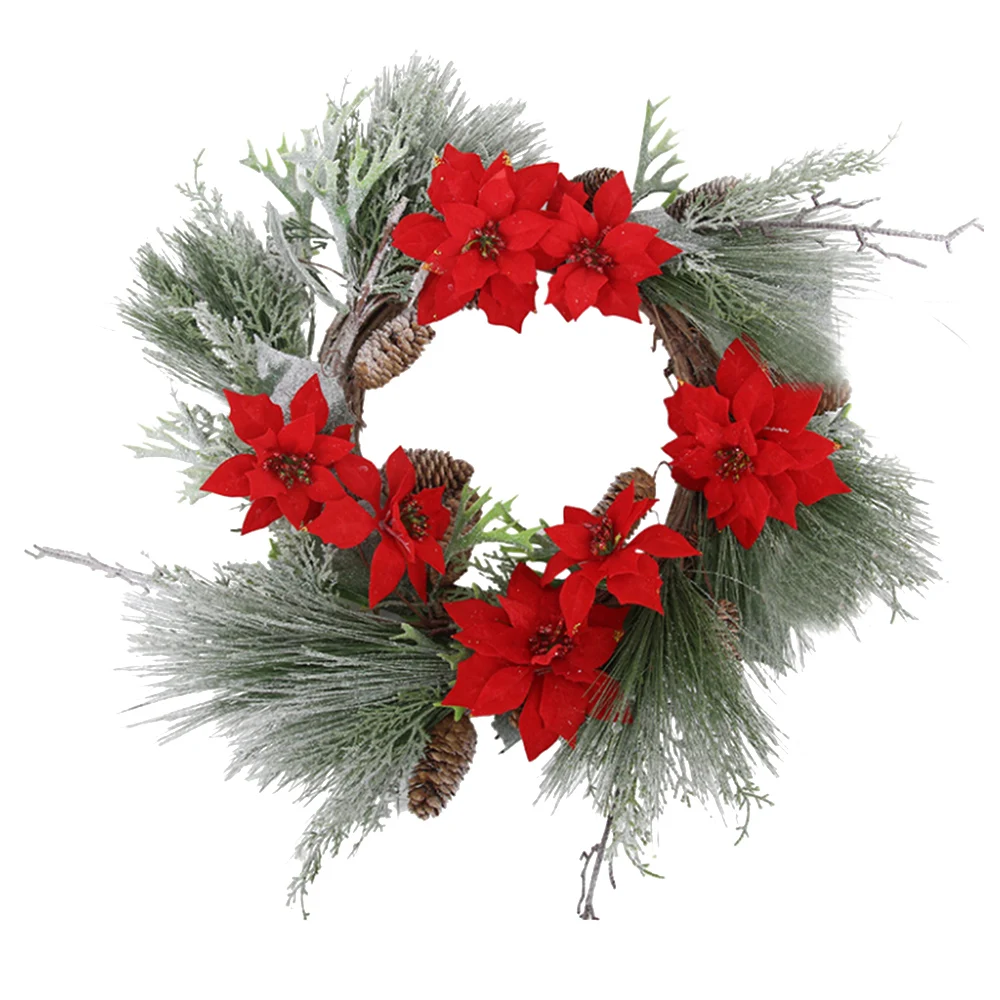 Christmas Artificial Flowers Wreath Front Door Holiday Home Hanging Decoration Frosted Winter Green