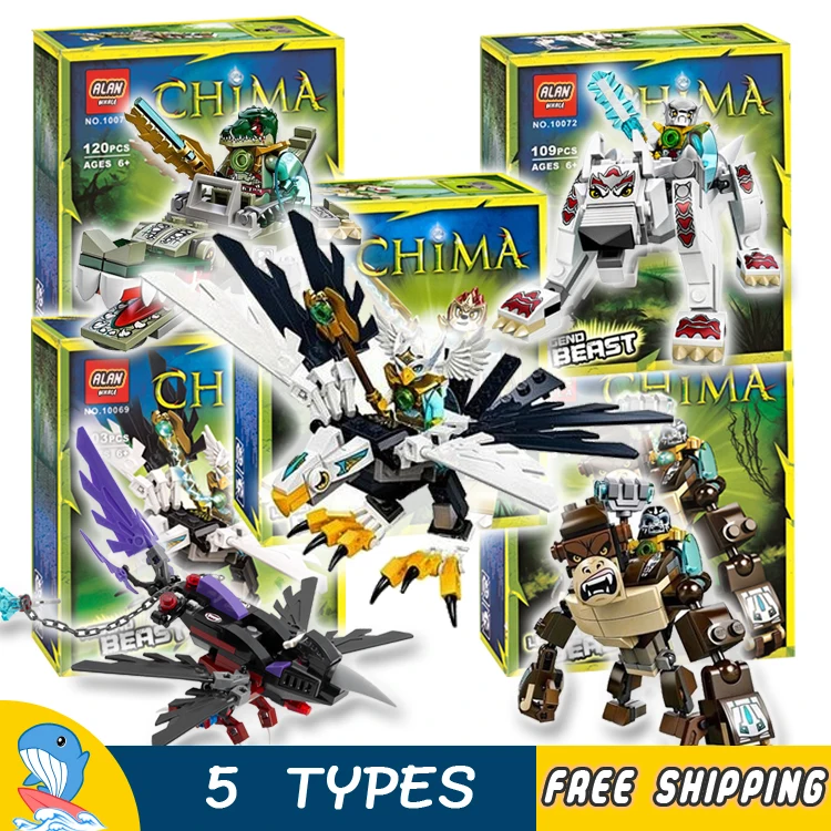 5in1 New Lion Eagle Gorilla Crocodile Wolf Legend Beast Striker Shield Model Building Blocks Toys B