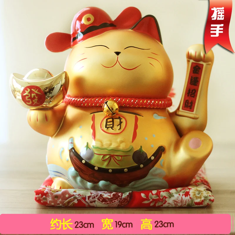 Genuine gold Japan Lucky Cat hand oversize ceramic ornaments shop opened 9 inch holiday gifts craft