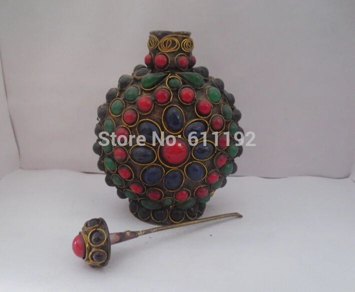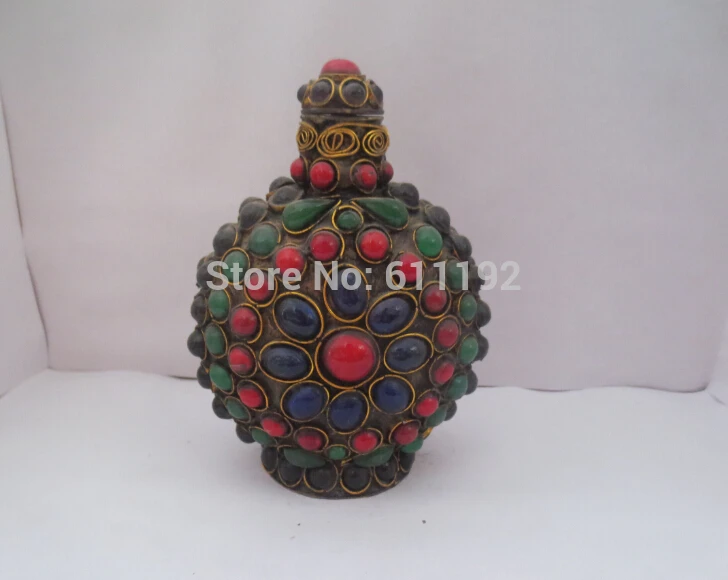 Antique Imitation metal crafts Tibet silver handmade stones snuff bottleHoliday Gift