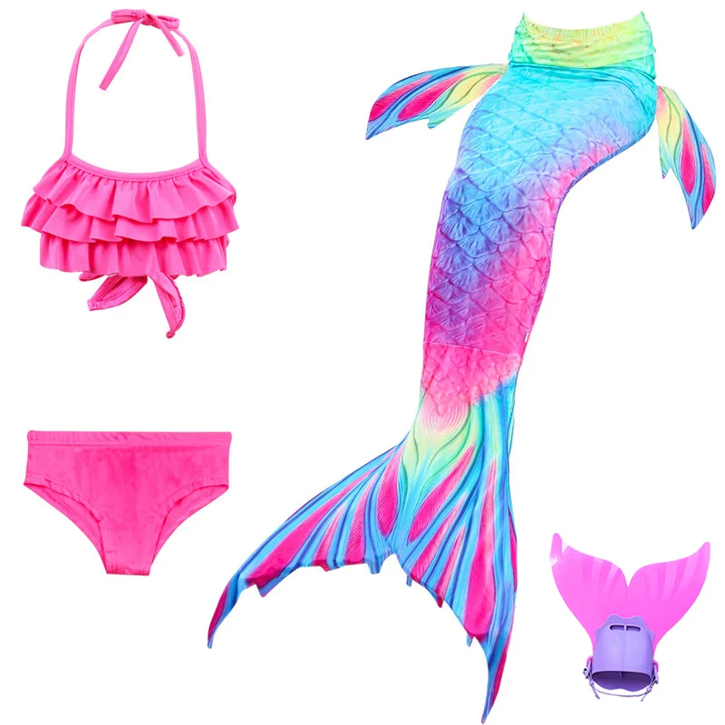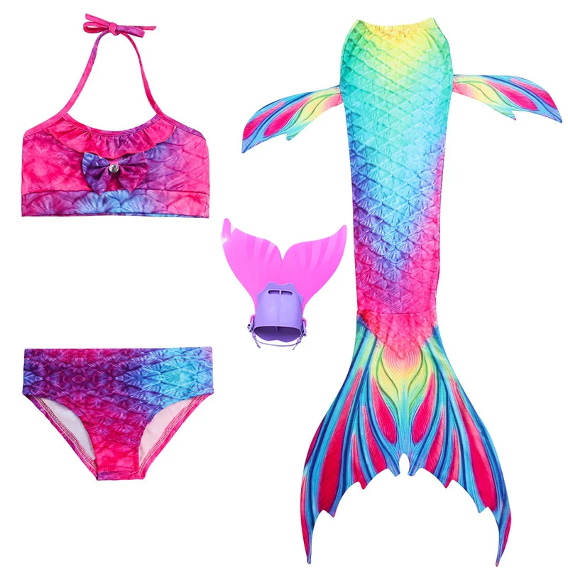Kids Girls Little Mermaid Tails Swimsuit Bikini Bathing Suit Dress with Monofin for Girls Mermaid c