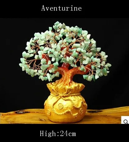 HIGH QUALITY Lucky tree Holiday gifts natural Aventurine quartz crystal gem money tree in for wealth money bay